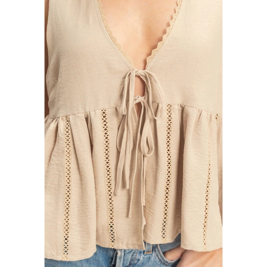 Lace Trim Tie Front Top